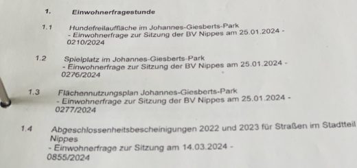 Wir können wir in einer Bezirksvertretung dagegen tun? Wir wollen nicht einfach sagen, „StEB, mach größere Abwasserkanäle“. Sondern wir sollten radikal dafür sorgen, dass nicht versiegelt, sondern entsiegelt wird. Wir haben uns im Stadtbezirk Nippes an diese Aufgabe gemacht. Es fehlen Schulgebäude? Wir wollen am Liebsten nur auf versiegelten Flächen bauen. Es fehlen Wohnungen? Wir wollen am Liebsten nur auf versiegelten Flächen bauen. Sie merken, welchen Spannungen mit der Sozialpolitik entstehen. Und doch: Wenn jede:r sagt, dass genau hierfür und dafür, für diesen und jenen guten Zweck eine Ausnahme gemacht wird, dann kommen wir nicht weiter. Wir haben in unserem Stadtbezirk. Und überhaupt nicht einzusehen ist, warum an der Niehler Straße / Blücherstraße, einem oftmaligen Überflutungsgebiet nun eine gerade erst aufgerissene Fläche voll versiegelt worden ist.