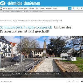 von Bernd Schöneck am 2.3.2022 in rundschau-online.de Der neue Kriegerplatz in Alt-Longerich ist nahezu fertig. Auf dem Platz sind bereits die gepflasterten...