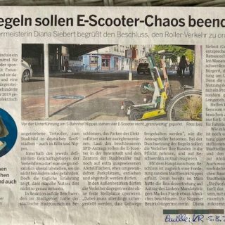 Statt kreuz und quer, neu geordnet: Ich freue mich über den aktuellen Beschluss des Hauptausschusses vom 19.07.2021, den E-Scooter-Verkehr neu zu reglementieren....
