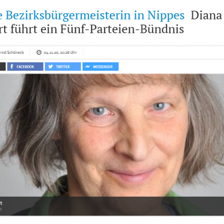 Am 12. November 2020 haben mich die Bezirksvertreter:innen von Grüne, Linken, FDP, GUT und Klimafreunden zur ehrenamtlichen Bezirksbürgermeisterin von Köln-Nippes gewählt. Zweimal Novum:...