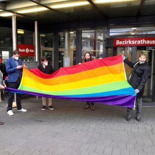 Gleiche Rechte! Auch das Bezirksrathaus in Nippes zeigte sich mit der Regenbogenfahne am 17. Mai 2021, am internationalen Tag gegen Homo-, Bi-,...